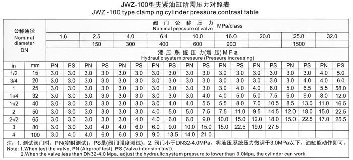 五、測(cè)試閥門時(shí),首先根據(jù)被試閥門試驗(yàn)壓力,要求參照《壓緊油缸所需壓力對(duì)照表》中液壓壓緊系統(tǒng)壓力值,進(jìn)行增壓壓力調(diào)節(jié),嚴(yán)禁增壓壓力值超高、防止被試閥門變形損壞。
